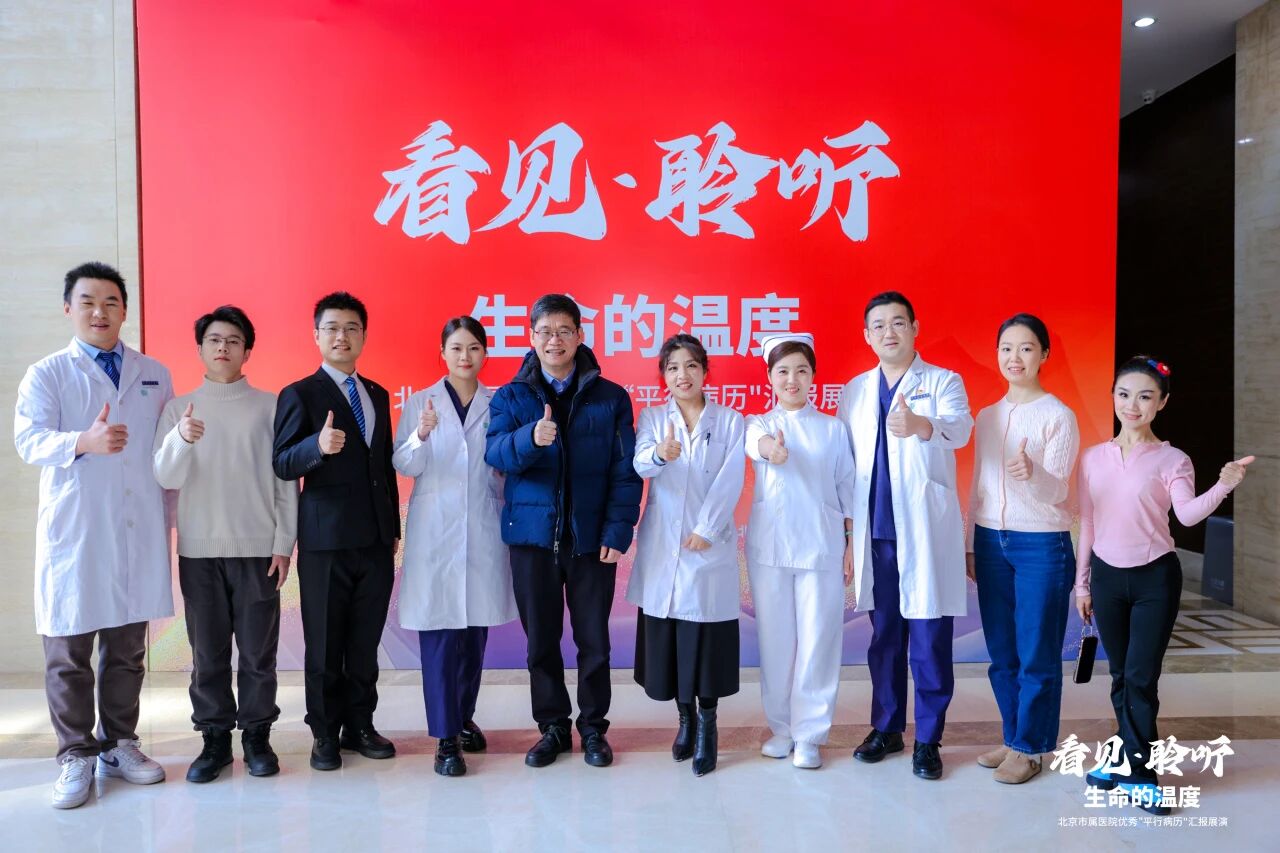作为本次竞赛的优秀获奖单位,我院受邀参与了以“看见・聆听——生命的温度”为主题的2025年北京市属医院优秀平行病历汇报展演。展演现场,医院组建了由耳鼻喉头颈外科中心及心内科医务人员构成的跨科室展演团队,以情景剧形式生动还原了一等奖作品《敲打无声的壁垒》中的医患故事。演员们凭借精湛的演绎,将临床工作中守护生命的执着以及医患之间的信任娓娓道来,通过艺术化表达传递深厚的医学人文关怀,充分彰显了医院医务工作者的专业素养与人文情怀,赢得了现场观众的强烈共鸣。