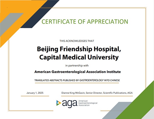《胃肠病学》(Gastroenterology)是美国胃肠病学会(American Gastroenterology Association,AGA)的官方杂志,是国际消化病学领域的顶级学术期刊,提供了胃肠病学基础和临床研究的最新和权威报道。首都医科大学附属北京友谊医院是国家消化系统疾病临床医学研究中心和消化健康全国重点实验室依托单位,是AGA在中国唯一官方指定授权发布《胃肠病学》杂志翻译的单位。